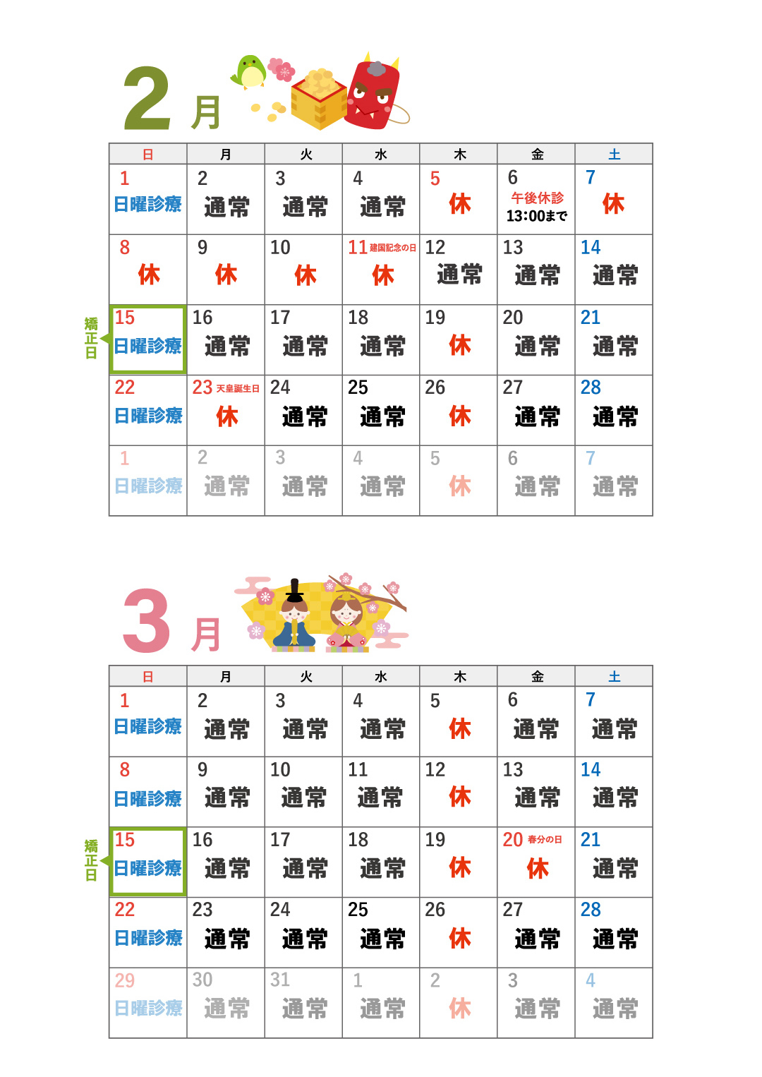平日来られない方のために日曜診療を行います。