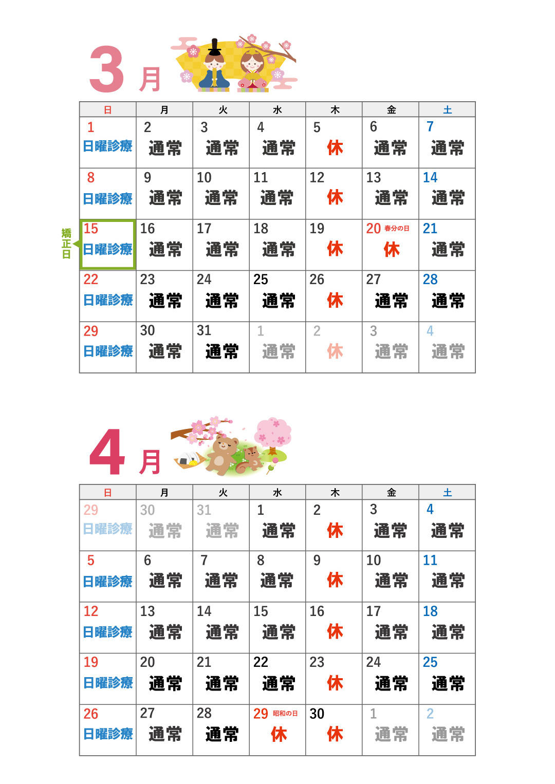 平日来られない方のために日曜診療を行います。